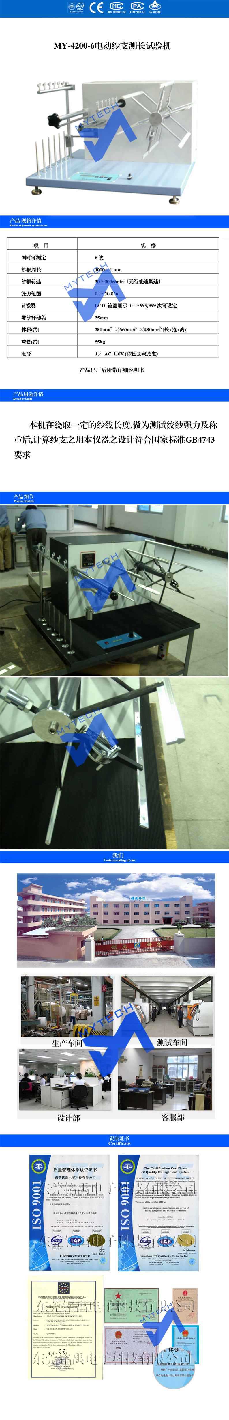 銘禹 MY-4200-6 电动纱支测长试验机